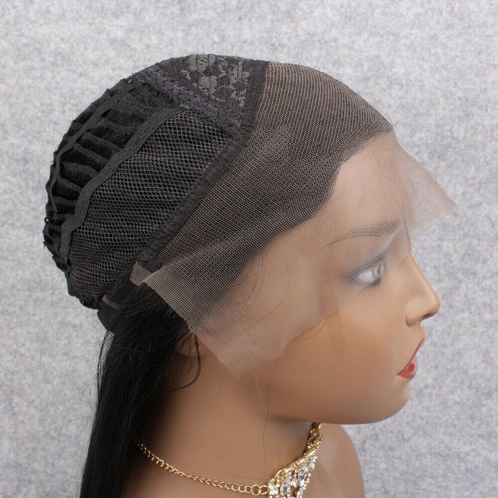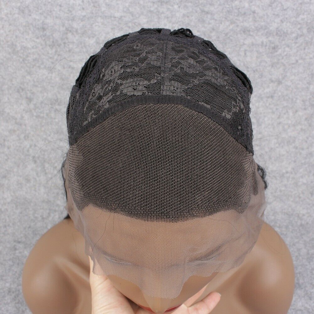 A Lace Front wig offers the most realistic natural looking hairline. Individual hairs are hand tied onto the lace, giving the impression of natural hair growth. Trim lace as needed. Apply lace with bonding glue or lace front tape and finished off with foundation and cosmetic powder.