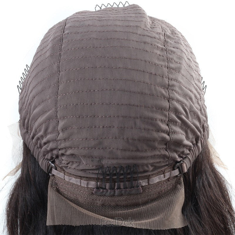 Hair is hand-tied on the front lace part and sewn on the adjustable light-netting cap. The adjustable light-netting cap with 2-3 short combs attached in the front and 1 short comb in the nape or sides to provide a more secure wearing. All you should need to do is adjust the hooks inside the cap to the correct size to suit your head. No Pins or Tape should be required.