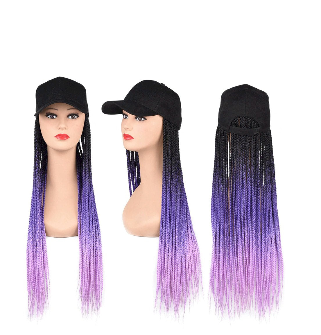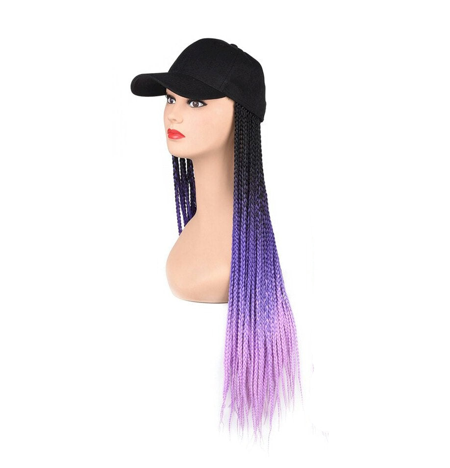 Synthetic Wig Hat Baseball Cap with Long Hair 24" inch Ombre Braided Box Braids Wig Heat Resistant Fiber.