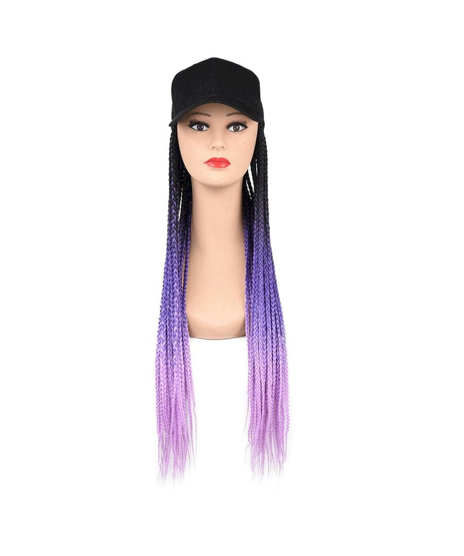 24" inch Ombre Braided Box Braids Connected to Baseball Cap (Purple-Black)