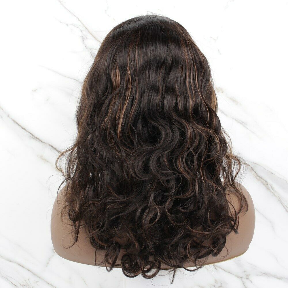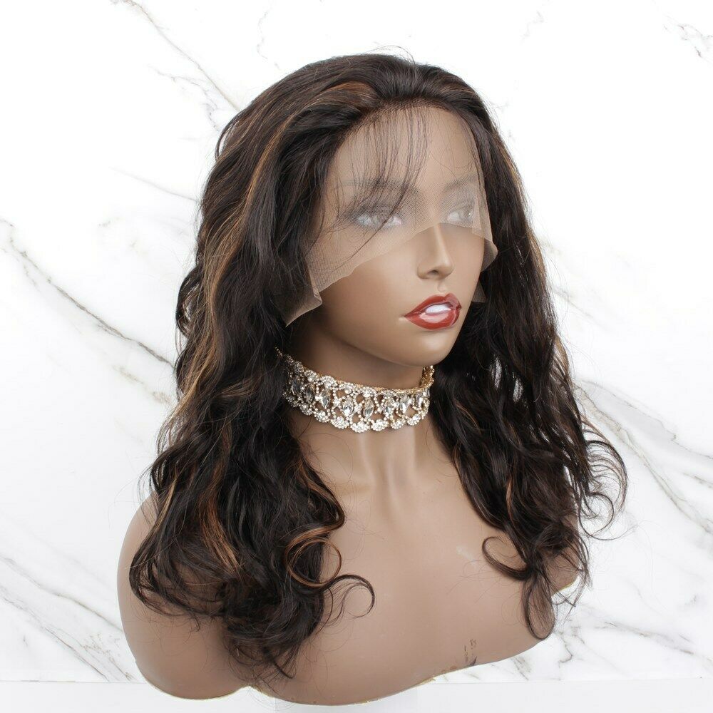 A Lace Front wig offers the most realistic natural looking hairline. Individual hairs are hand tied onto the lace, giving the impression of natural hair growth. Trim lace as needed. Apply lace with bonding glue or lace front tape and finished off with foundation and cosmetic powder.