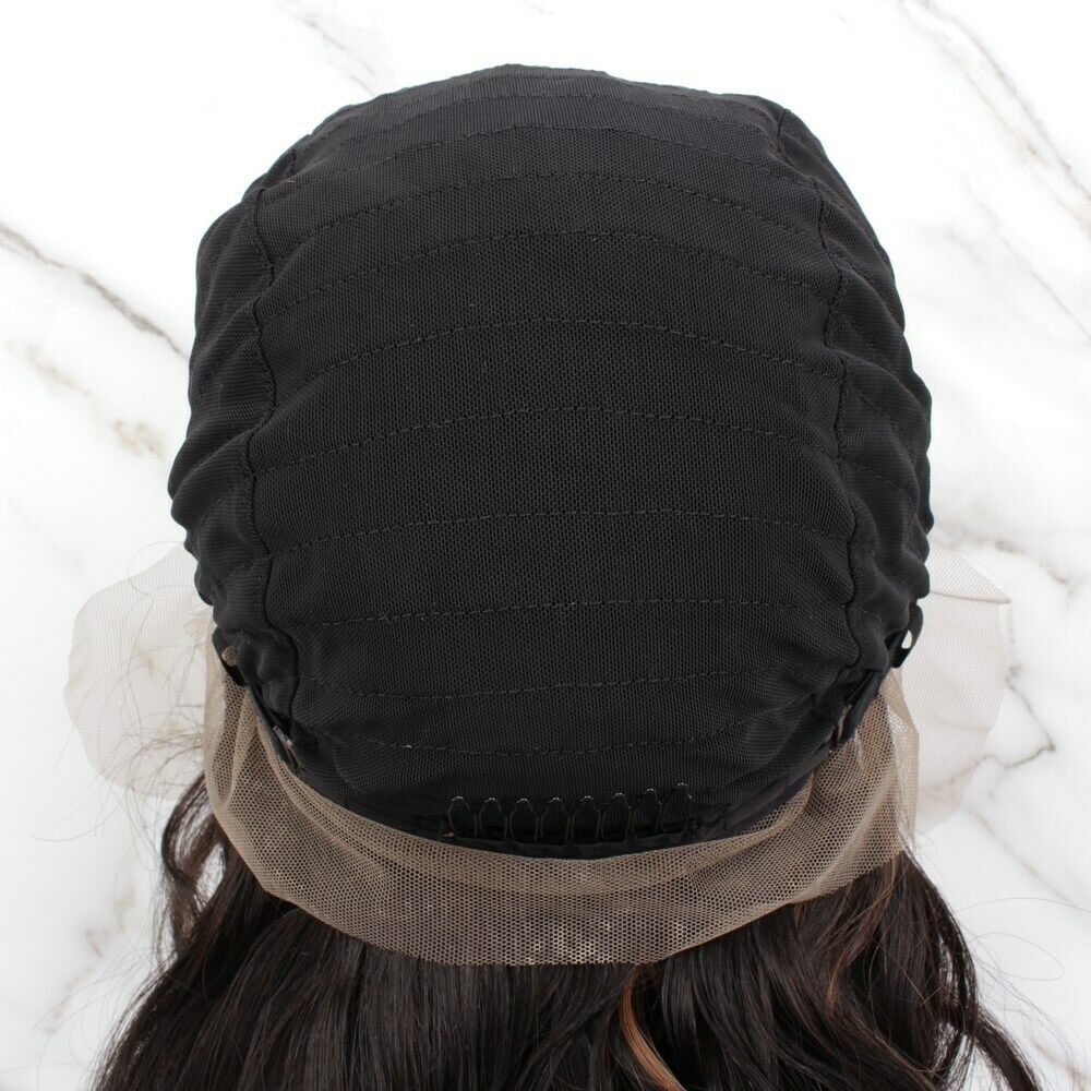 Hair is hand-tied on the front lace part and sewn on the adjustable light-netting cap. The adjustable light-netting cap with 2-3 short combs attached in the front and 1 short comb in the nape or sides to provide a more secure wearing. All you should need to do is adjust the hooks inside the cap to the correct size to suit your head. No Pins or Tape should be required.