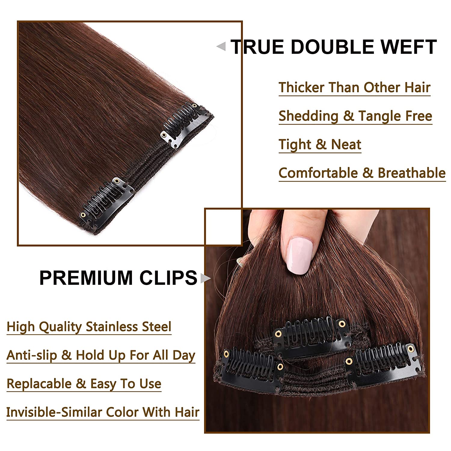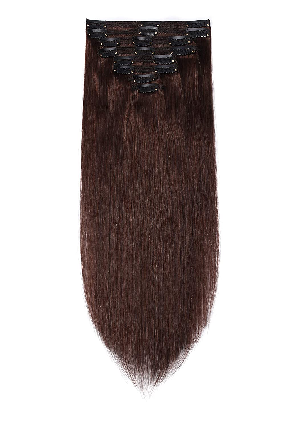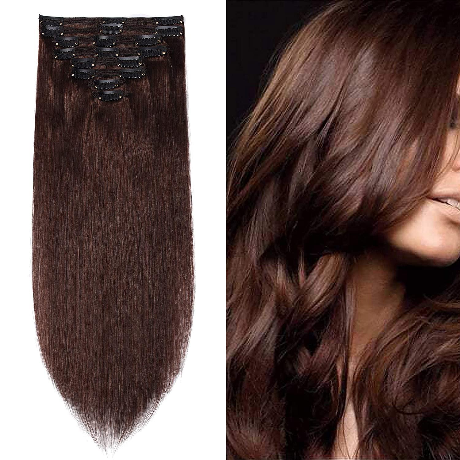 s-noilite Clip in Human Hair Extensions 100% Real Remy Thick True Double Weft Full Head 8 Pieces clips Long Straight silky
