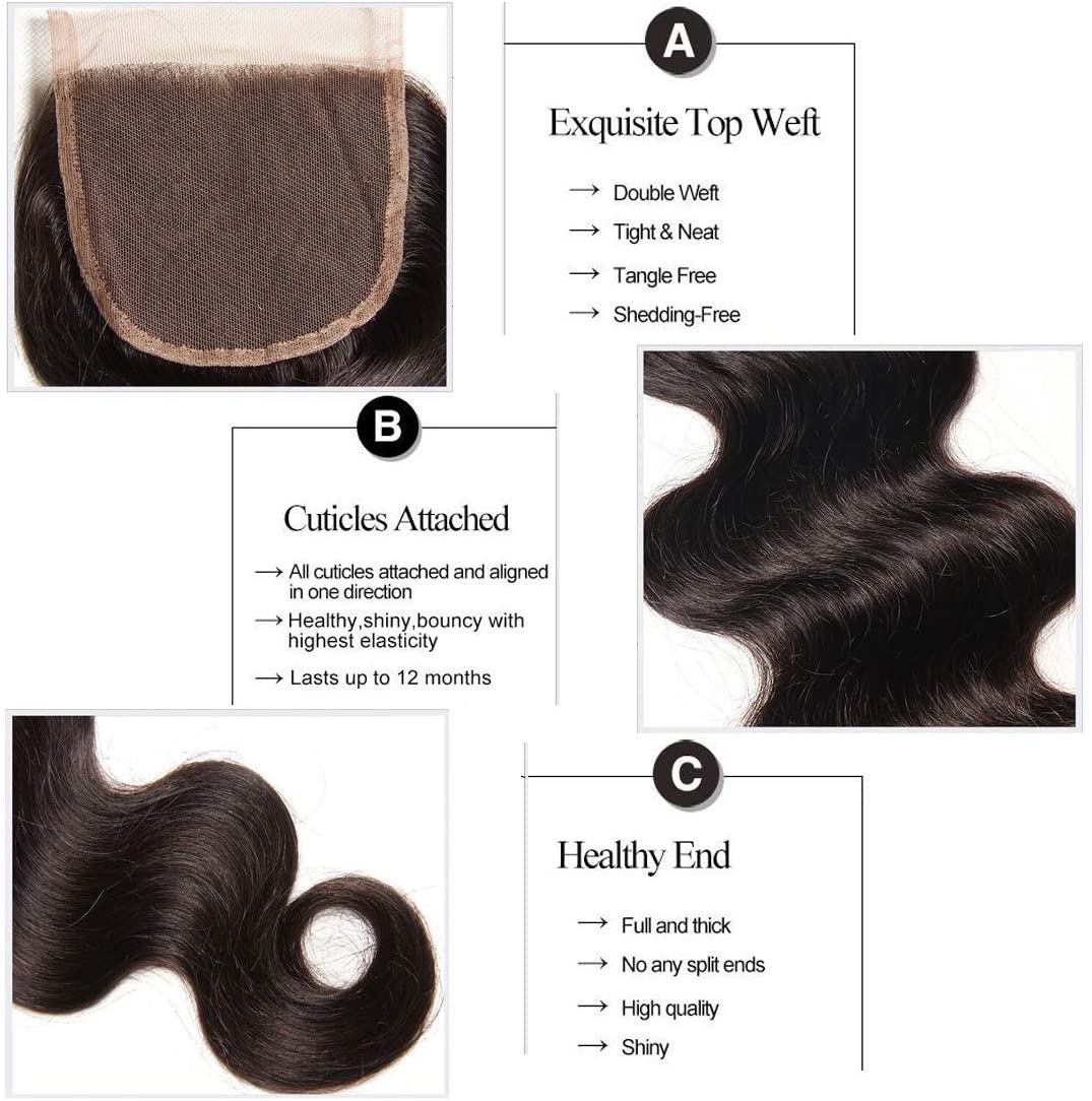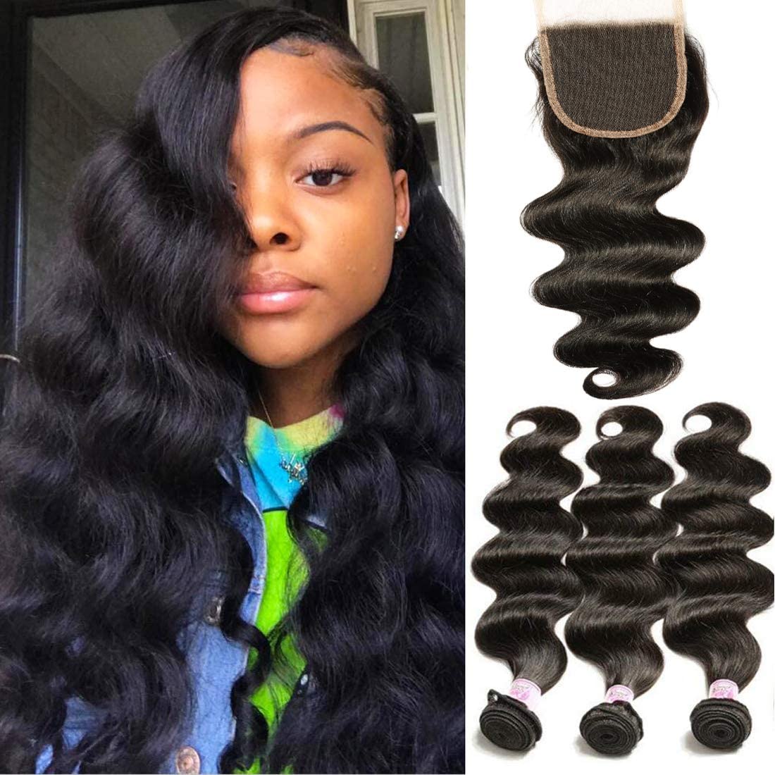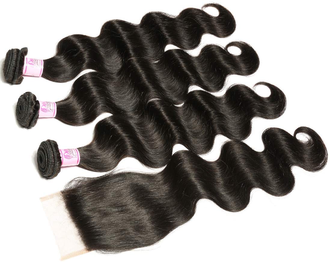 Indian Body Wave Hair 3 Bundles with 4x4 Lace Closure