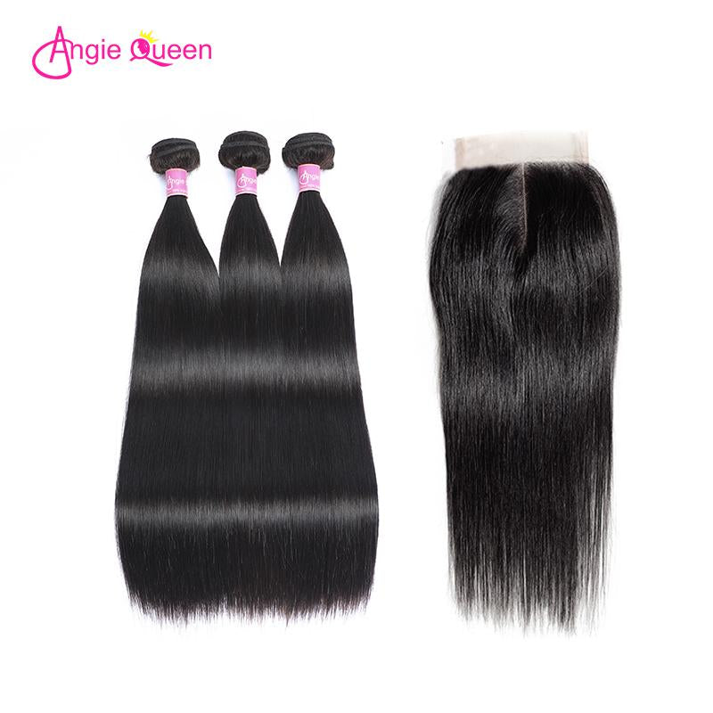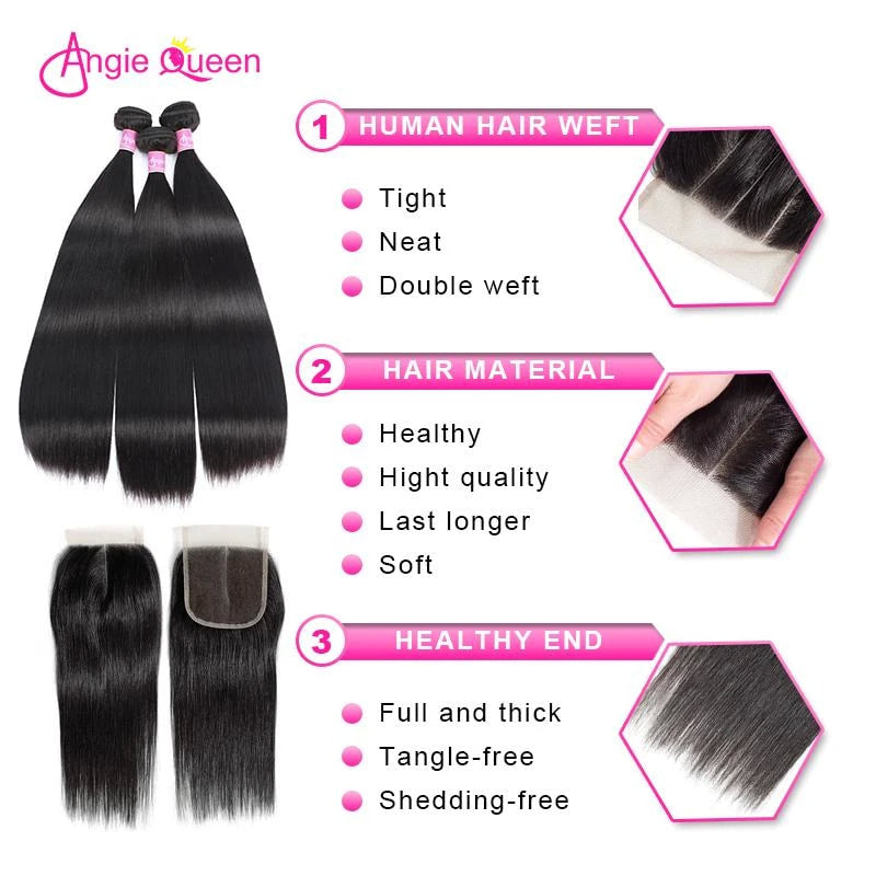 Peruvian Virgin Straight Hair 3 Bundles Weave hair & Lace Frontal (16" 16" 18" + 14" closure)