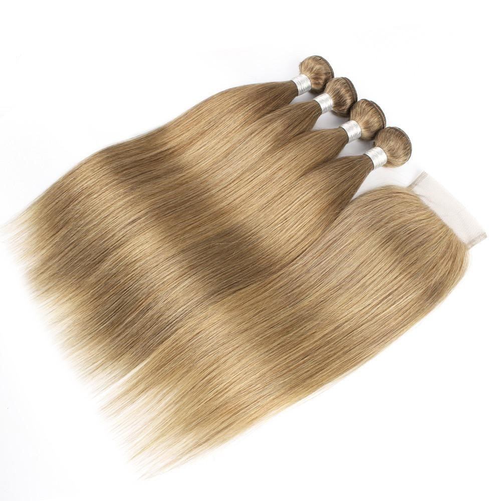 100% Human Hair Blonde Straight 4 Bundles (18", 18", 24", 24" + 14" closure 4x4)
