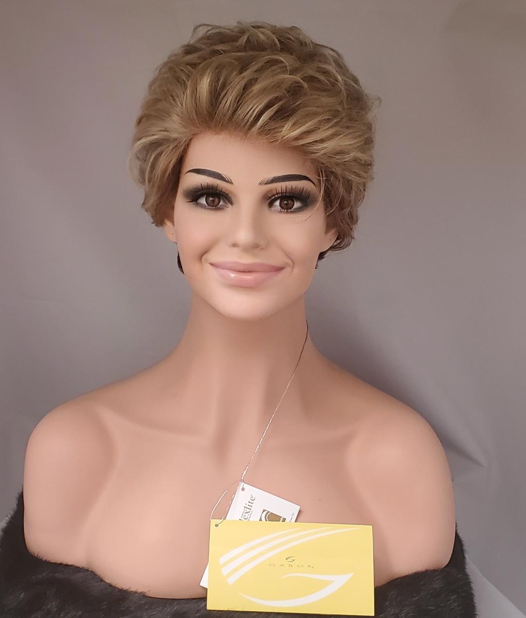 Acclaim also features a hand-knotted hairline. Gabor Next styles are made with exclusive FLEXLITE fibre. This fine, natural-looking, 24-denier fibre is beautifully lightweight yet provides excellent coverage. Short, waved layers beautifully blend to a neck-hugging, tapered nape.
