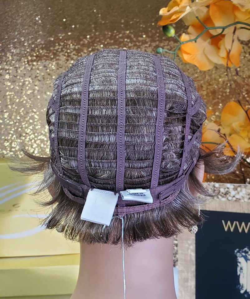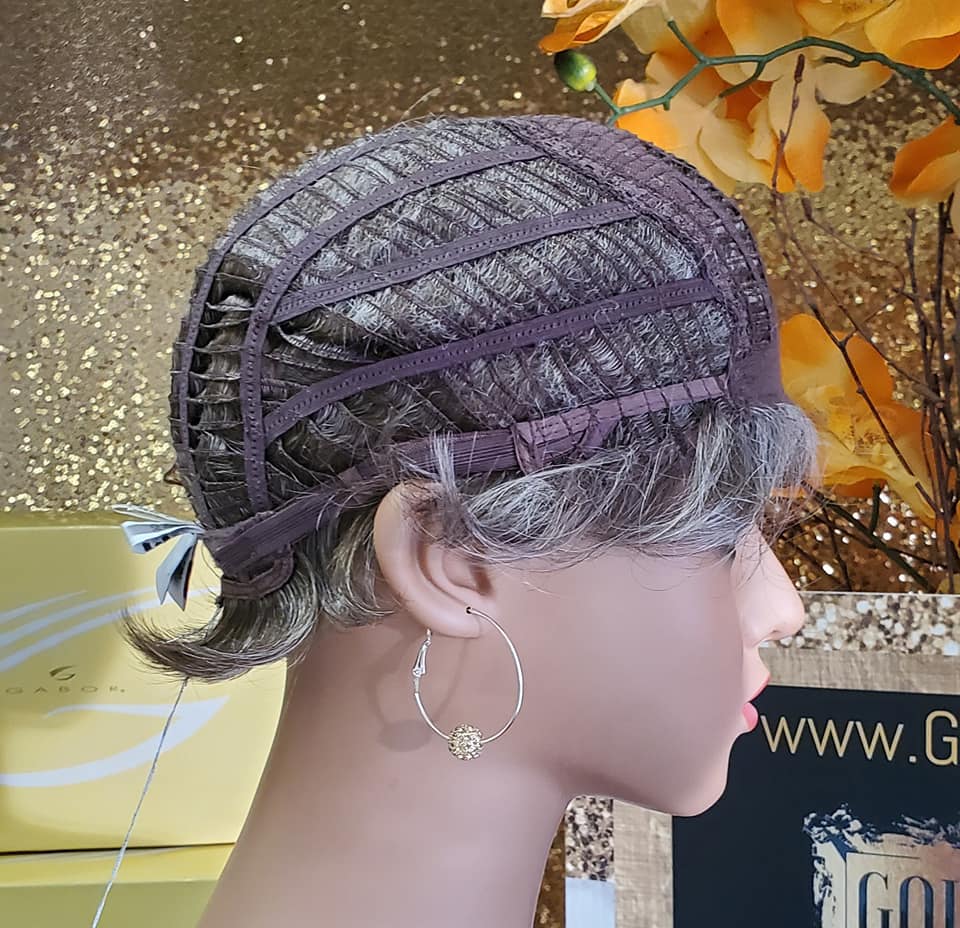 Acclaim by Gabor is a lightweight wig with short, waved layers, beautifully blend to a neck-hugging, tapered nape. Available in multiple cap sizes! Features include an open cap construction, and an extended nape. Available in grays.... beautiful shades of grey!