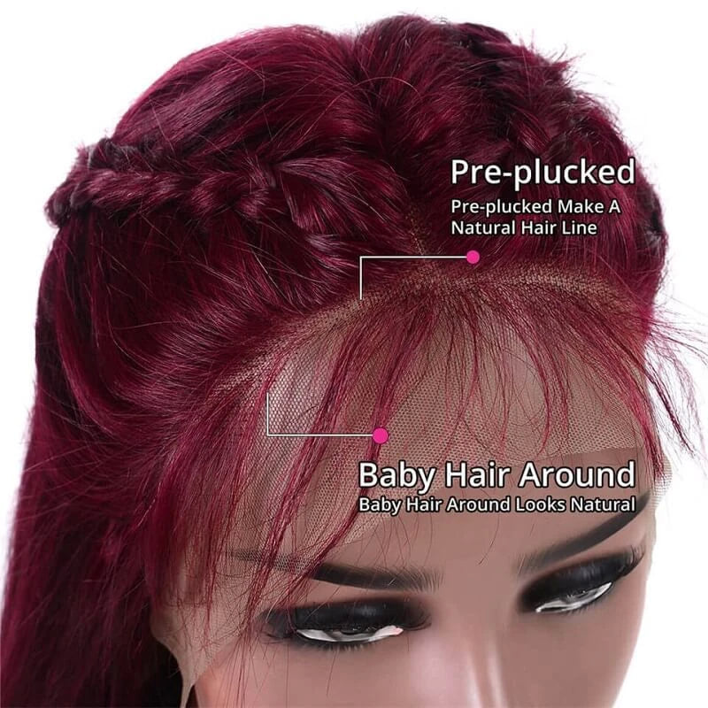 3.Our 99J wine Hair color medium brown Swiss lace can be straightened, curled and bleached. It is front wig with comb that can be adjusted, medium size(22.5"
