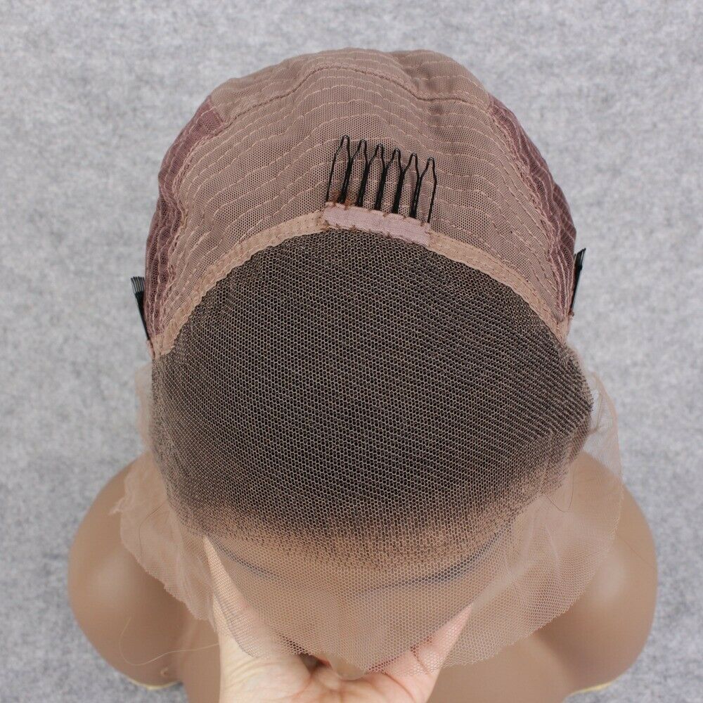A Lace Front wig offers the most realistic natural looking hairline. Individual hairs are hand tied onto the lace, giving the impression of natural hair growth. Trim lace as needed. Apply lace with bonding glue or lace front tape and finished off with foundation and cosmetic powder.
