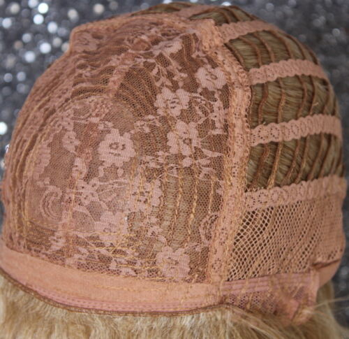 It is made out of deluxe synthetic fiber and is a very high quality wig with adjustable size inner straps to fit the size of your head and good quality cap with center Part.