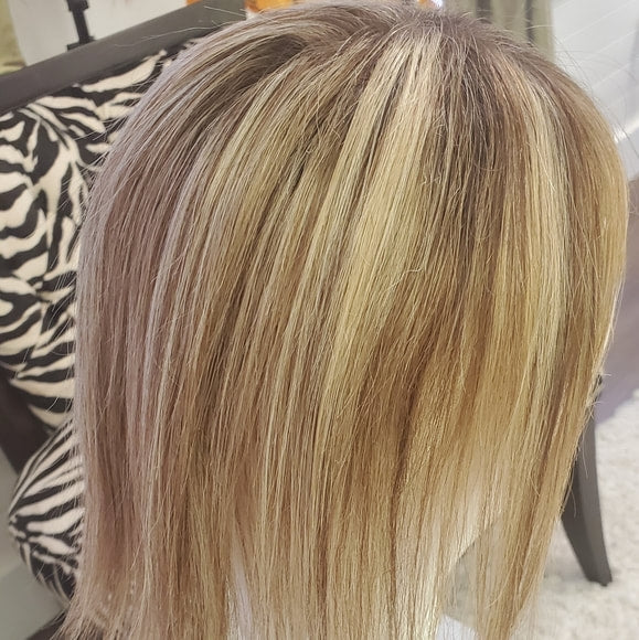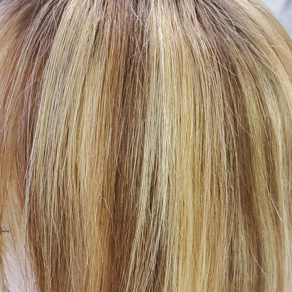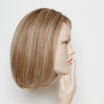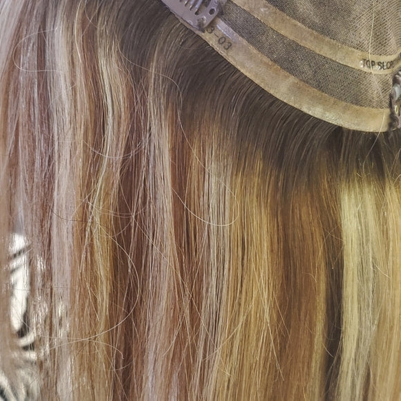 The Top Secret Topper "12" is specifically designed for shoulder medium length hairstyles that vary from 10"-12". It is designed to be worn anywhere from ½"-2 ½” back from the hairline; the under stitch of hair around the front edge helps the piece blend flawlessly with your natural hair. This hairpiece is so lightweight you’ll forget you’re wearing it!