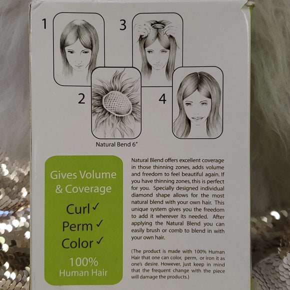 Natural Blend offer excellent coverage in those thinning zones, adds volume and freedom to feel beautiful again. If you have thinning zones, this is perfect for you. Specially designed individual diamond shape allows for the most natural blend with your own hair. This unique system gives you the freedom to add it wherever its needed. After applying the Natural Blend you can easily brush or comb to blend in with your own hair.
