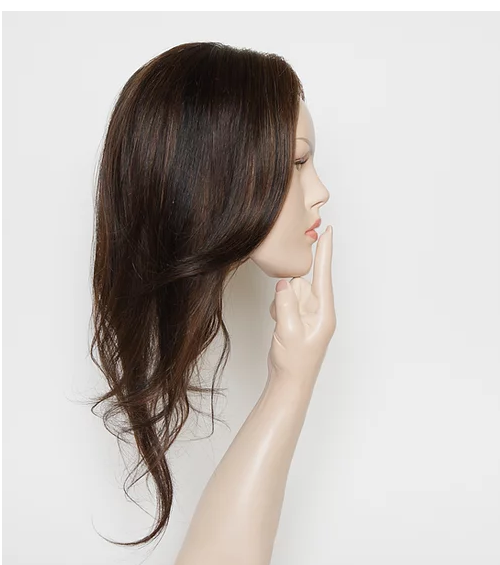The Top Secret Topper "10" is specifically designed for shoulder medium length hairstyles that vary from 10"-12". It is designed to be worn anywhere from ½"-2 ½” back from the hairline; the under stitch of hair around the front edge helps the piece blend flawlessly with your natural hair. This hairpiece is so lightweight you’ll forget you’re wearing it!