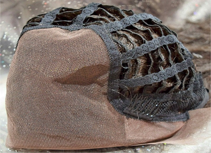 Hair is hand-tied on the front lace part and sewn on the adjustable light-netting cap. The adjustable light-netting cap with 2-3 short combs attached in the front and 1 short comb in the nape or sides to provide a more secure wearing. All you should need to do is adjust the hooks inside the cap to the correct size to suit your head. No Pins or Tape should be required.