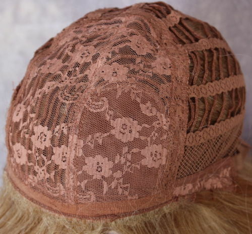 It is made out of deluxe synthetic fiber and is a very high quality wig with adjustable size inner straps to fit the size of your head and good quality cap with center Part.