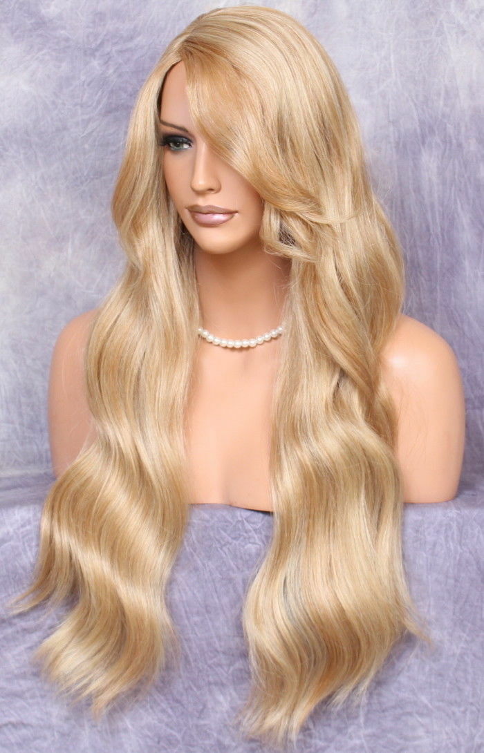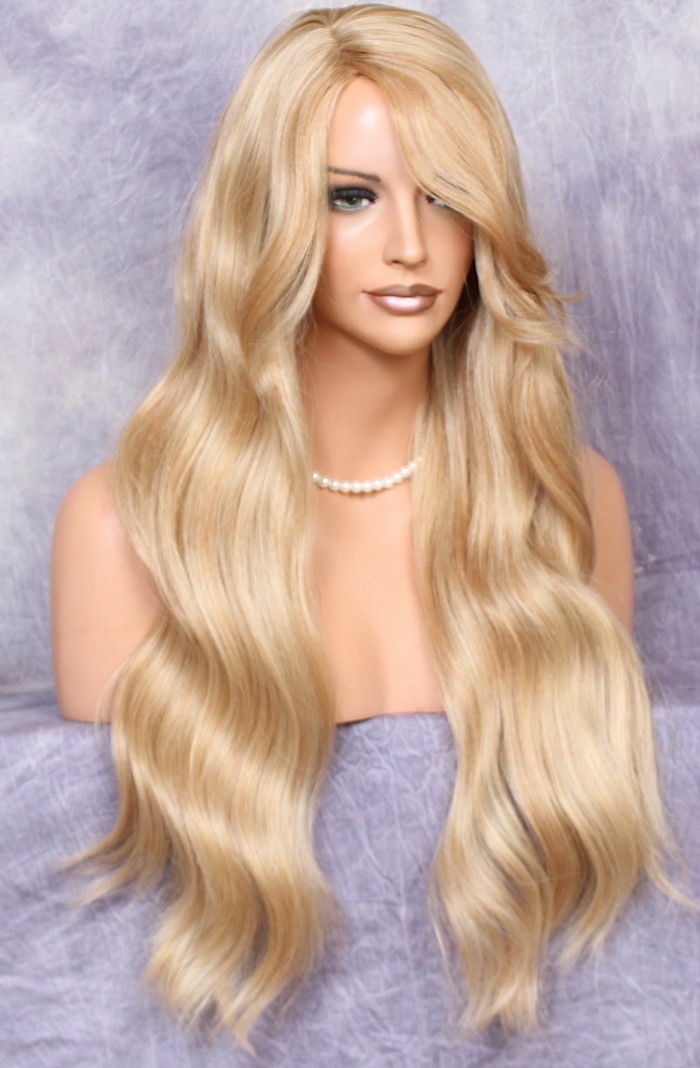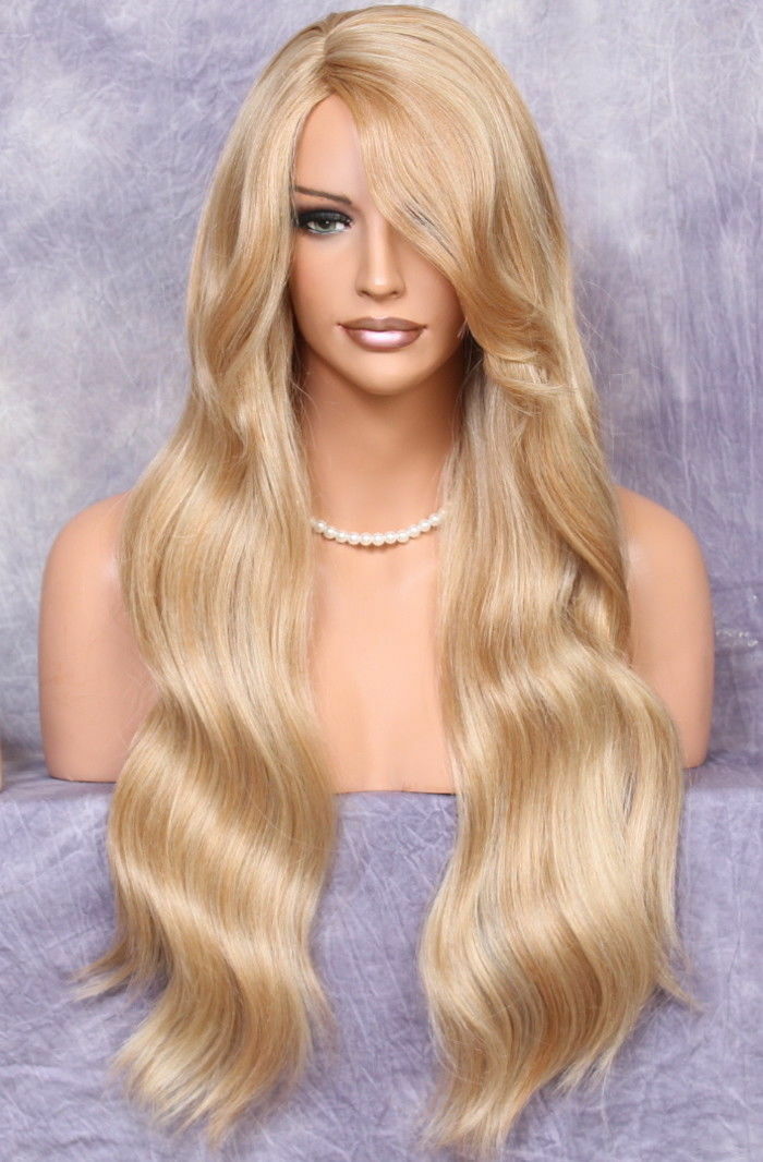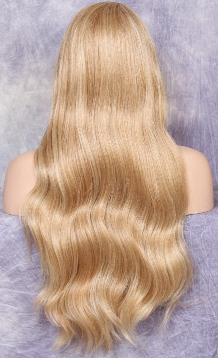 Synthetic, Blonde mix wavy Bangs Full Wig, Heat OK