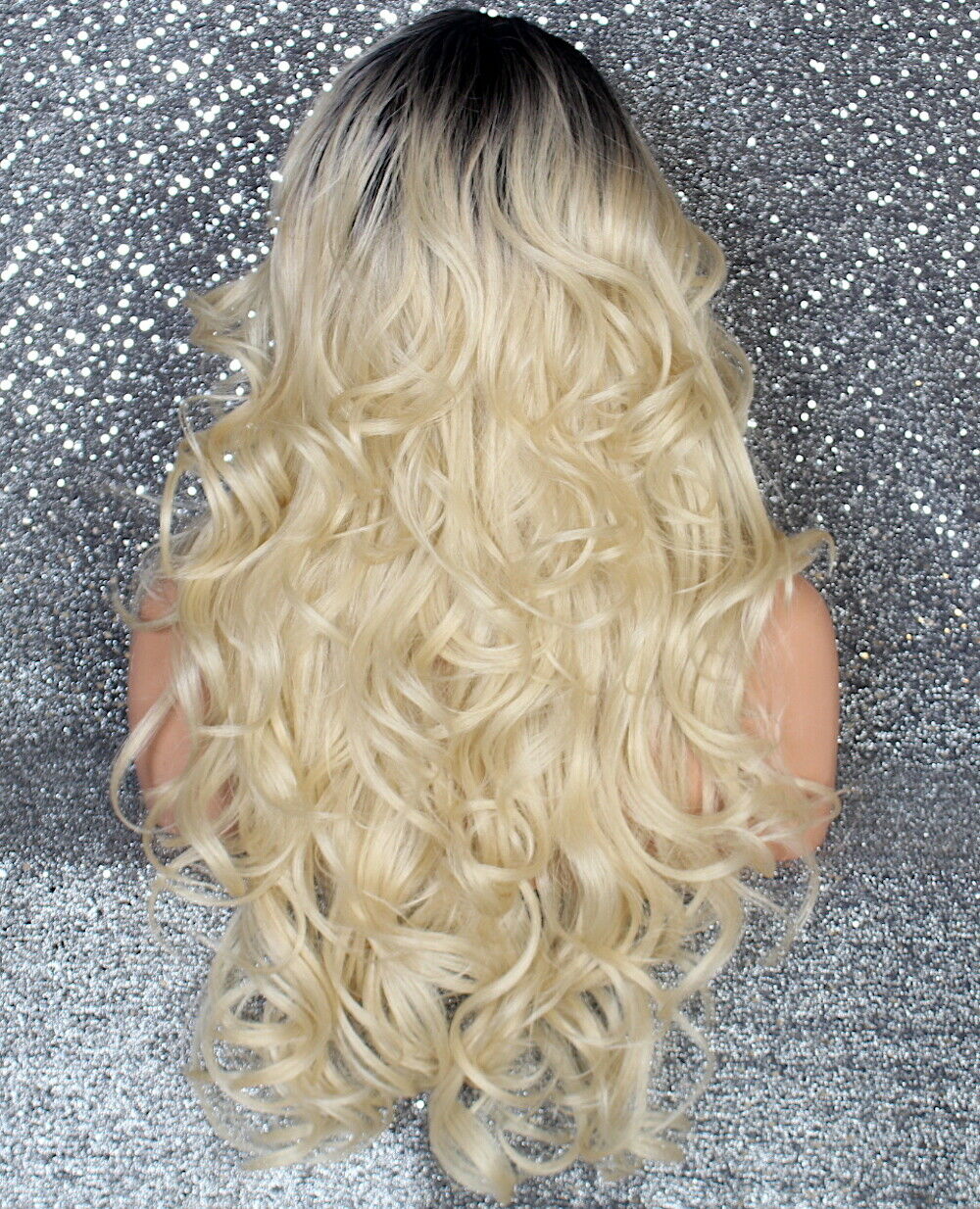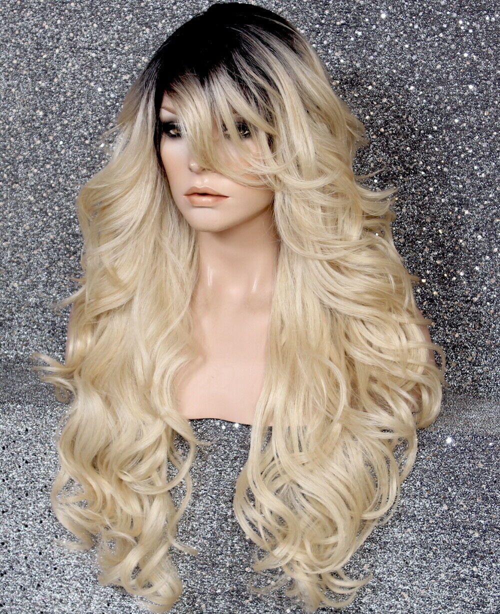 Synthetic, Wavy Long Layered Dark Root Blonde Wig, Heat OK