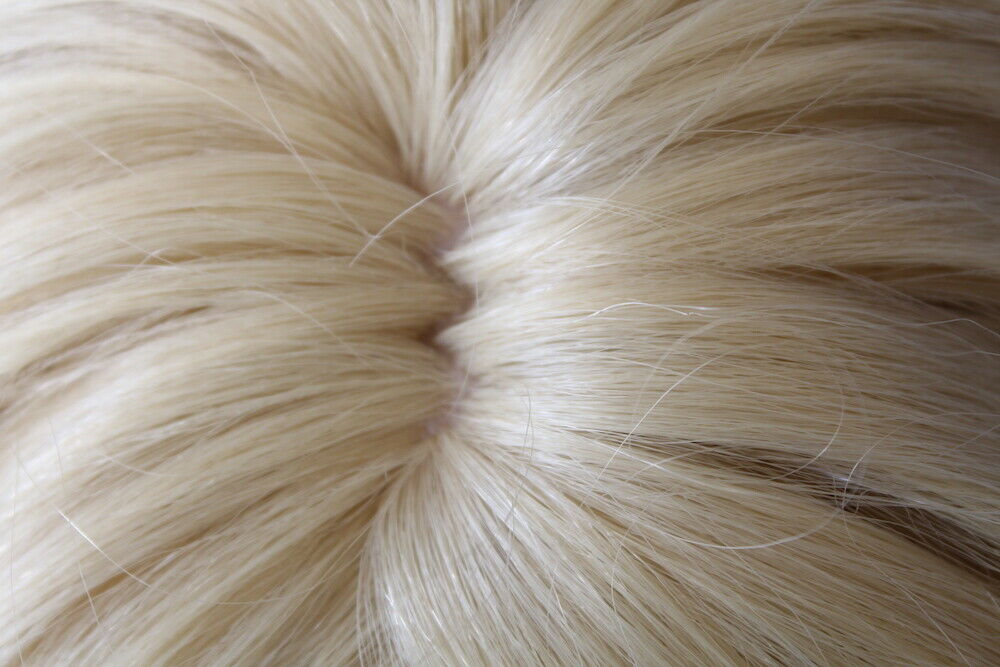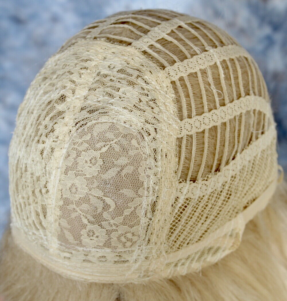 It is made out of deluxe synthetic fiber and is a very high quality wig with adjustable size inner straps to fit the size of your head and good quality cap with center Part.