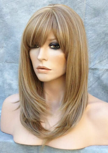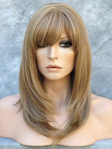 Synthetic, Full Wig Layered Straight bangs Blonde mix, Heat OK
