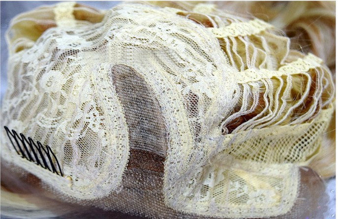 Hair is hand-tied on the front lace part and sewn on the adjustable light-netting cap. The adjustable light-netting cap with 2-3 short combs attached in the front and 1 short comb in the nape or sides to provide a more secure wearing. All you should need to do is adjust the hooks inside the cap to the correct size to suit your head. No Pins or Tape should be required.