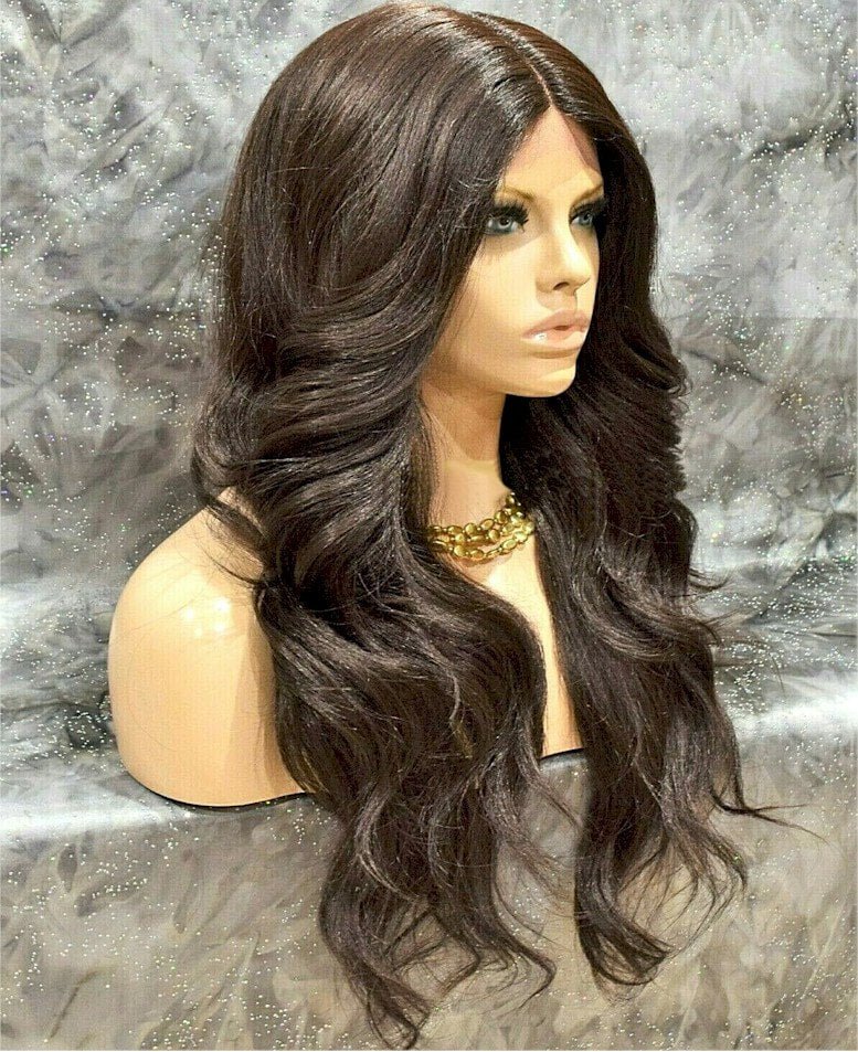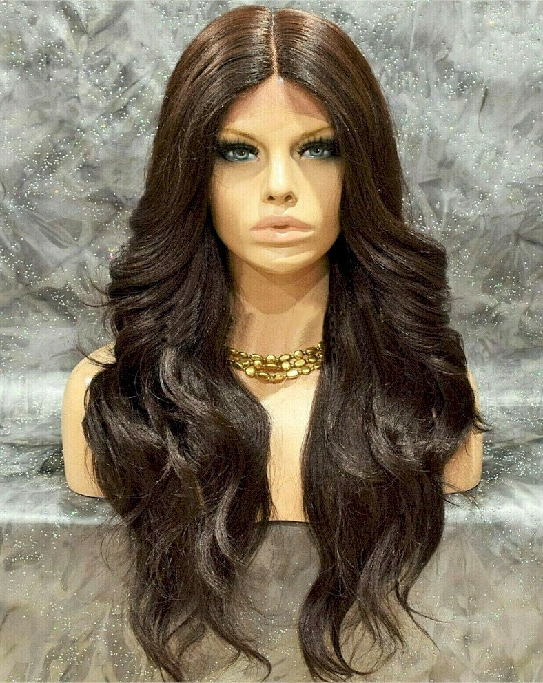 Synthetic, Lace Front Full Wig, Long Wavy Layered Brown Hair, Heat OK