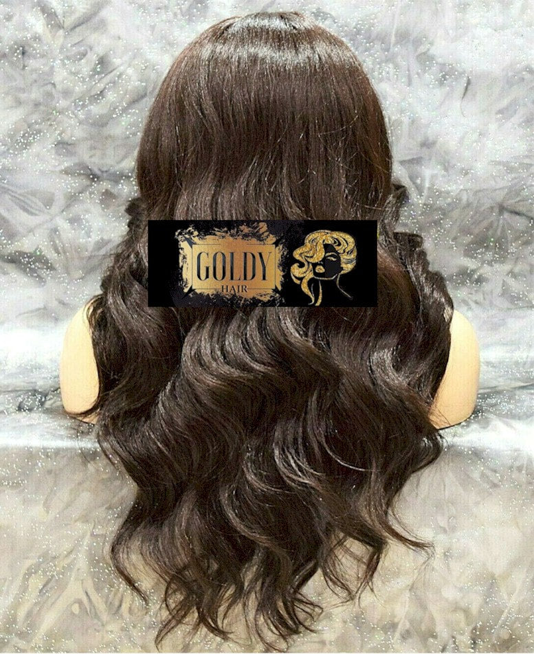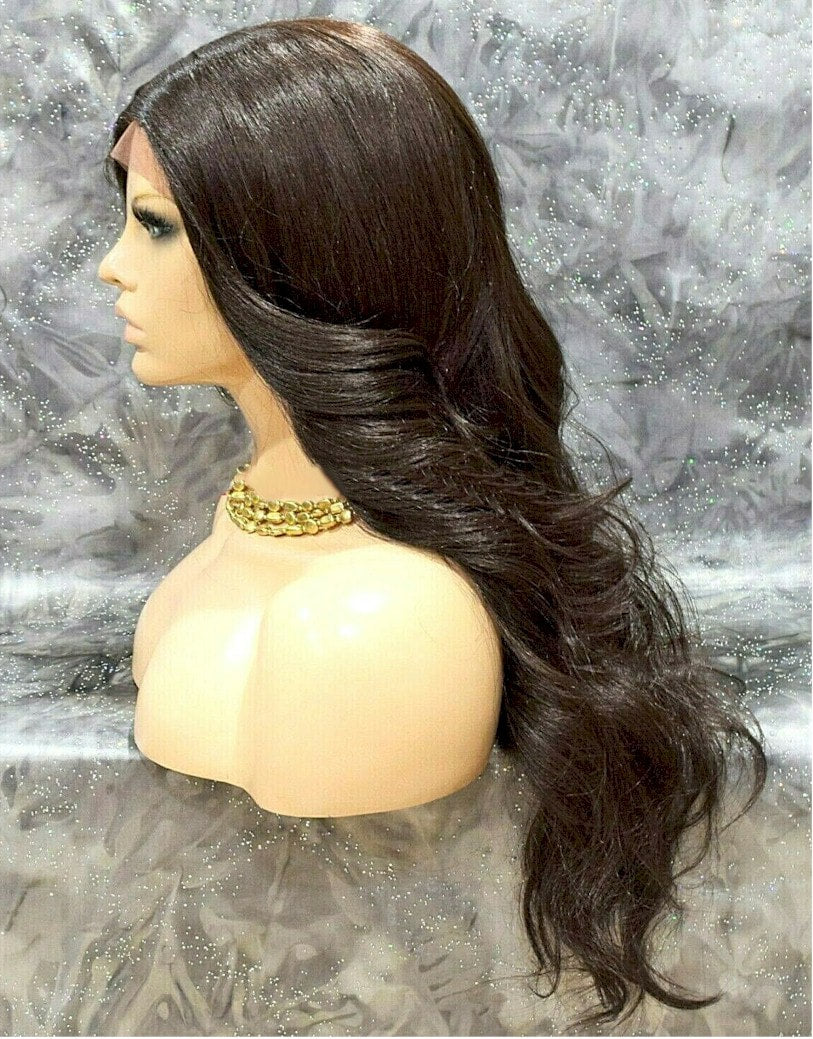 Swiss lace front wig with a hand tied monofilament mono top. It's a free part wig.