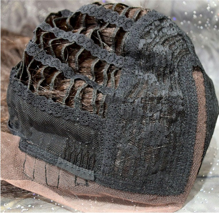 Hair is hand-tied on the front lace part and sewn on the adjustable light-netting cap. The adjustable light-netting cap with 2-3 short combs attached in the front and 1 short comb in the nape or sides to provide a more secure wearing. All you should need to do is adjust the hooks inside the cap to the correct size to suit your head. No Pins or Tape should be required.