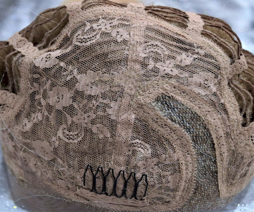 Hair is hand-tied on the front lace part and sewn on the adjustable light-netting cap. The adjustable light-netting cap with 2-3 short combs attached in the front and 1 short comb in the nape or sides to provide a more secure wearing. All you should need to do is adjust the hooks inside the cap to the correct size to suit your head. No Pins or Tape should be required.