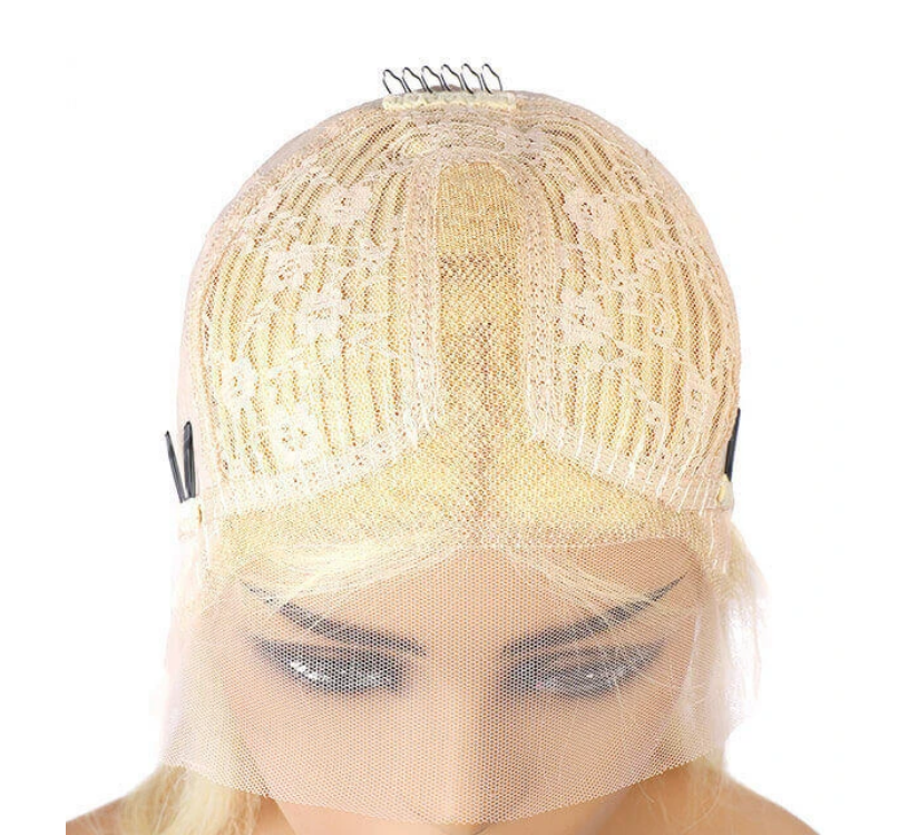 A Lace Front wig offers the most realistic natural looking hairline. Individual hairs are hand tied onto the lace, giving the impression of natural hair growth. Trim lace as needed. Apply lace with bonding glue or lace front tape and finished off with foundation and cosmetic powder.