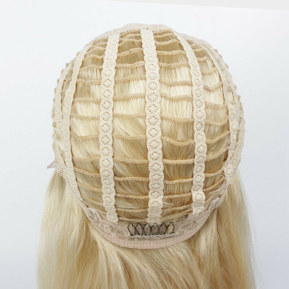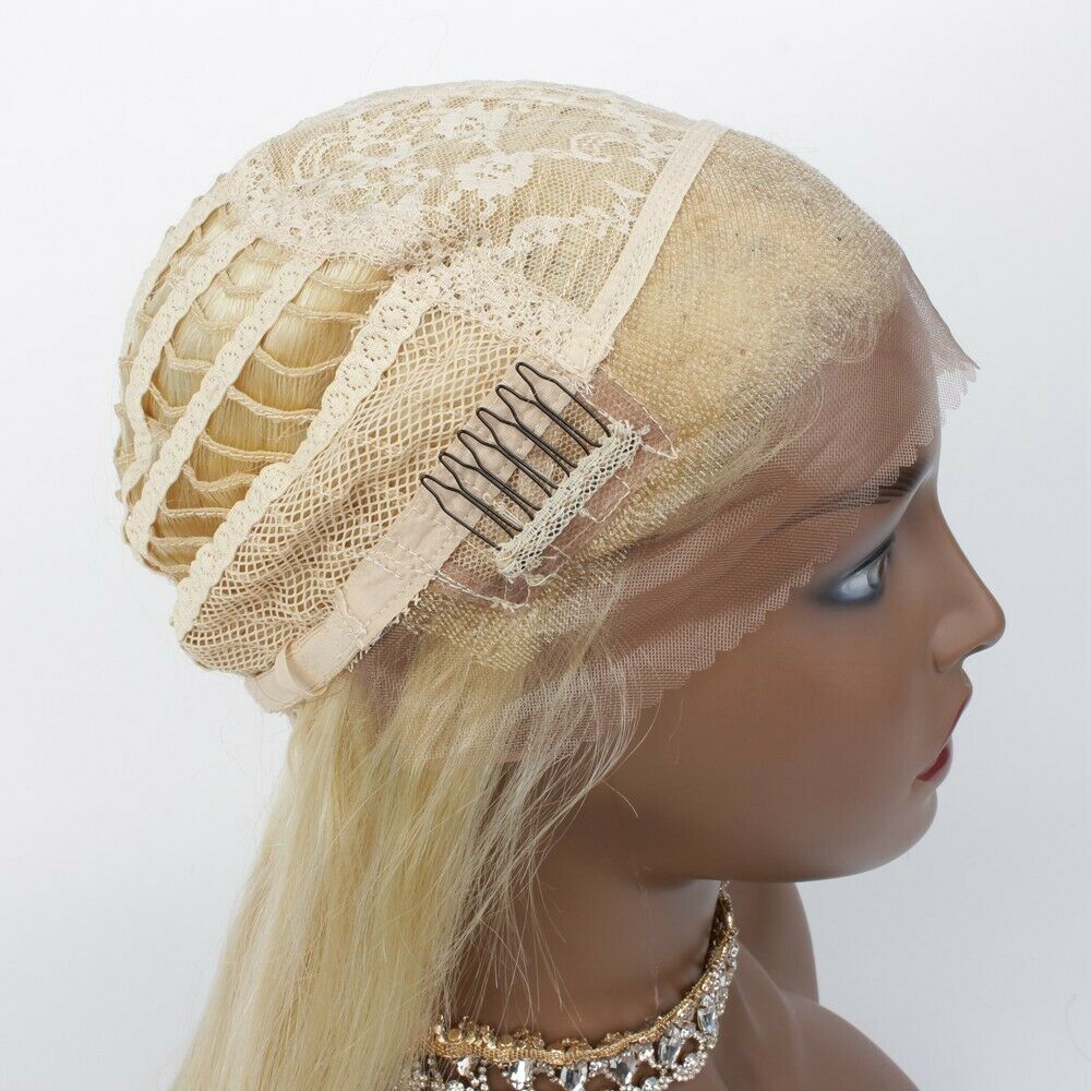 Hair is hand-tied on the front lace part and sewn on the adjustable light-netting cap. The adjustable light-netting cap with 2-3 short combs attached in the front and 1 short comb in the nape or sides to provide a more secure wearing. All you should need to do is adjust the hooks inside the cap to the correct size to suit your head. No Pins or Tape should be required.