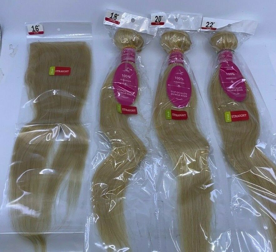 Hair Color: #613 Bleach blonde silky straight hair bundles